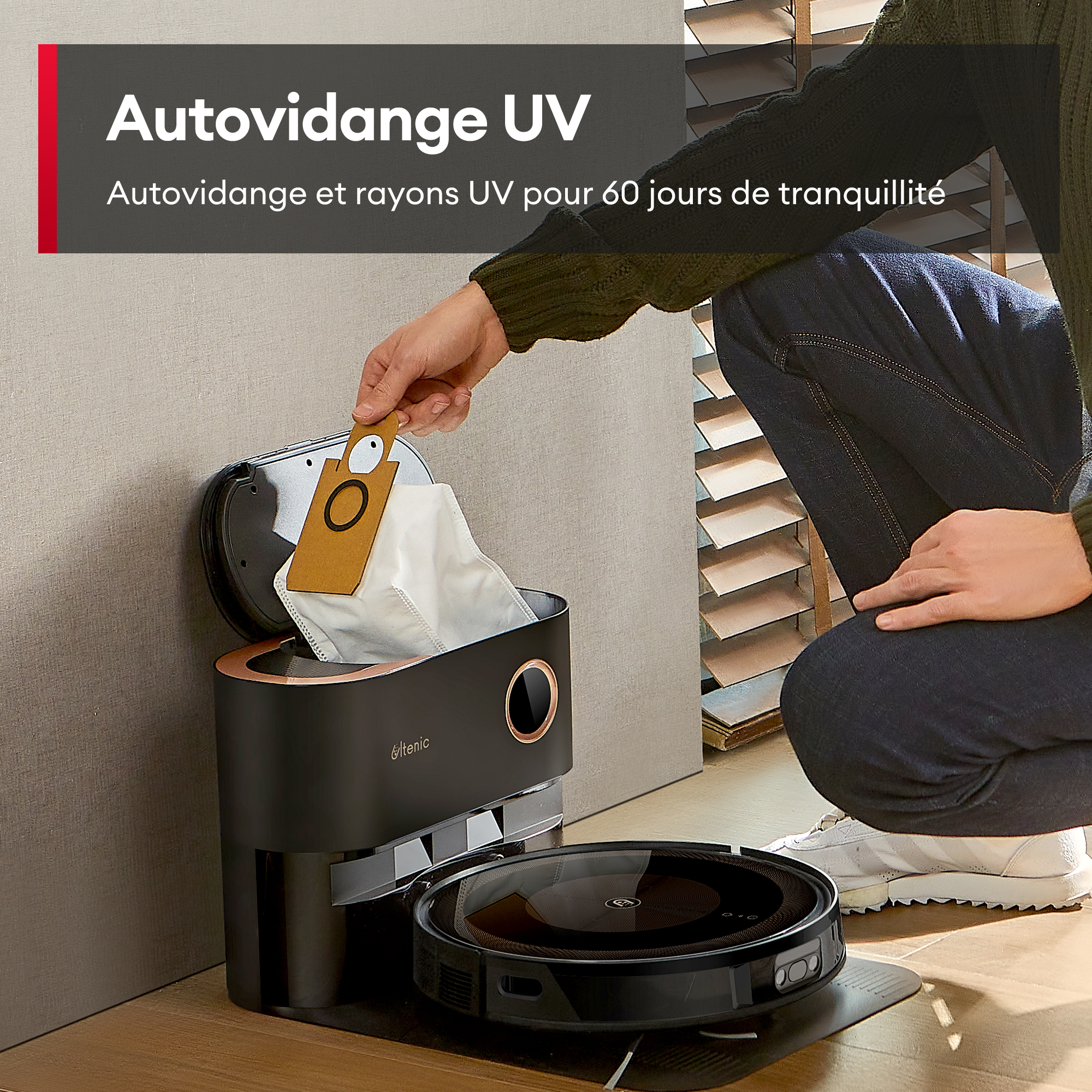 | Composants inclus | Adapteur, Sac à poussière(*2 supplémentaire), Serpillière rotative (*1 couple supplémentaire), Manuel (en Français), Station d’auto-vidange, Télécommande, HEPA (*1 supplémentaire), Brosse latérale(*1 supplémentaire), Pinceau pour l’entretien, Robot aspirateur, Support de serpillière |